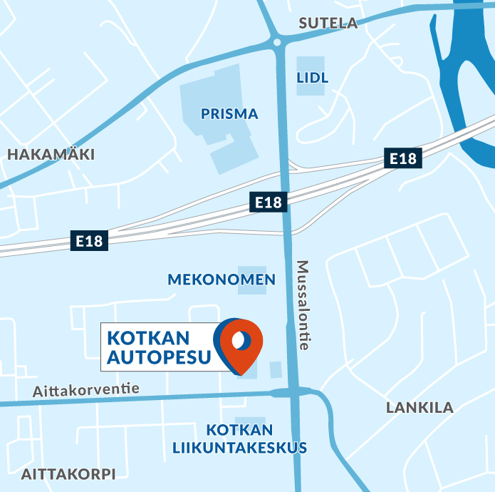 Löydät meidät helposti. Sijaitsemme lyhyen matkan, noin 400 metrin päässä Kotkan Prismasta.